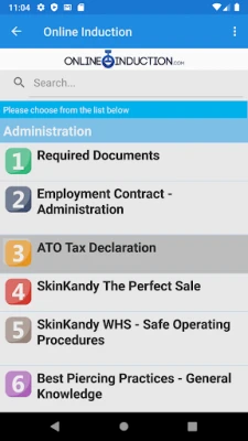 Induction allows users to access and complete their Online induction material via the app.