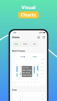 Track your blood pressure history and trends through detailed charts.