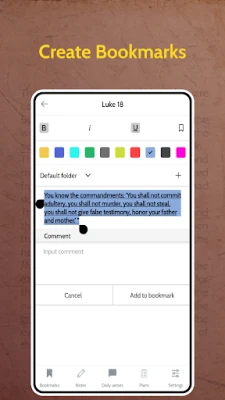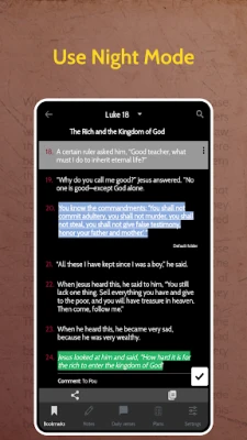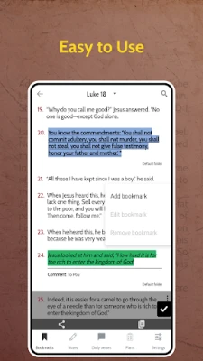 The following parameters stand out in favour of download our app: offline reading, adding handy bookmarks, daily verses with notifications, convenient and free study plans with customisable notifications feature, choice of theme and font size and much more...