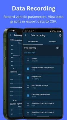 Use our OBD2 app as a gauge dashboard. Create your own set of gauges. You can customize approximately all gauge parameters(sizes, colors, positions of stroke, arrow, texts, labels, backgrounds and etc.) Resize and move gauge in edit mode to desired place just using your fingers. Enjoy your style!
